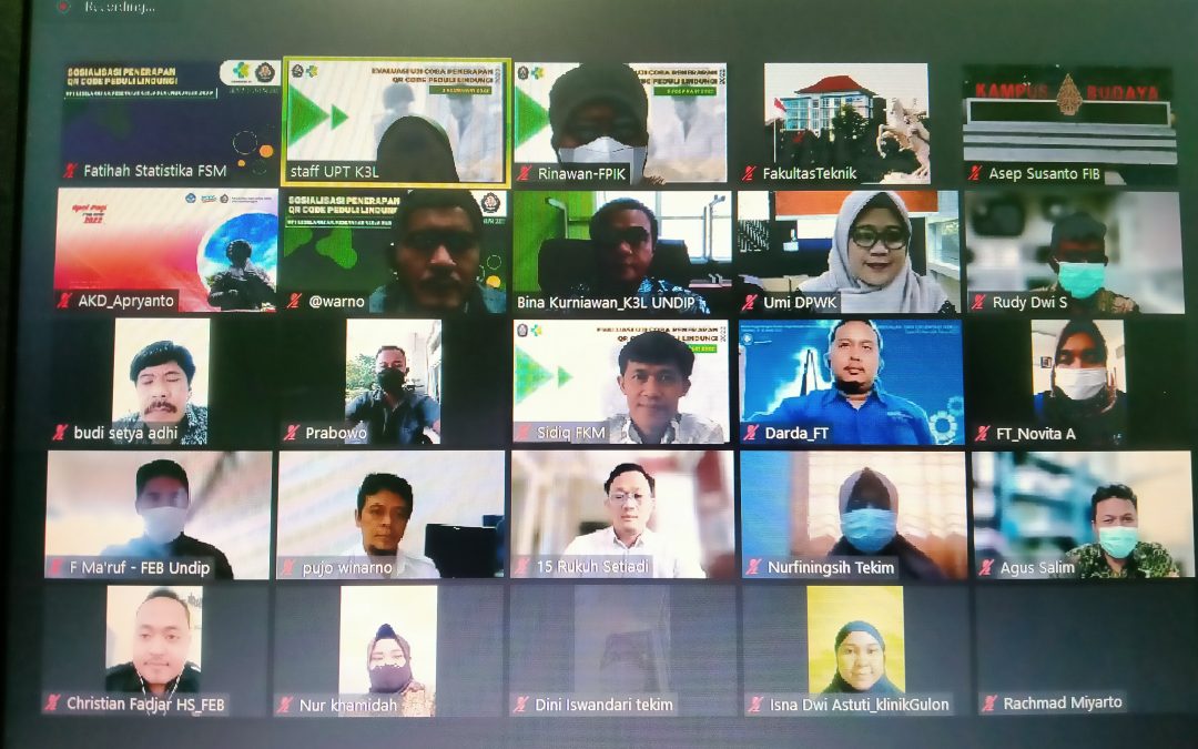 pada Kegiatan Sosialisasi Secara Online bersama DTO Kemenkes RI sebagai Penaggung Jawab pembuatan QR Qode Peduli Lindungi. Kepala UPT K3L mengatakan, Universitas Diponegoro telah menerapkan aplikasi scan QR Code Peduli Lindungi. “Saat ini Universitas Diponegoro telah memberlakukan aturan baru berdasarkan surat edaran Nomor 7 Tahun 2022 tentang penerapan Scan QR Code Peduli Lindungi sebagai upaya skrining pada civitas akademika” tuturnya.