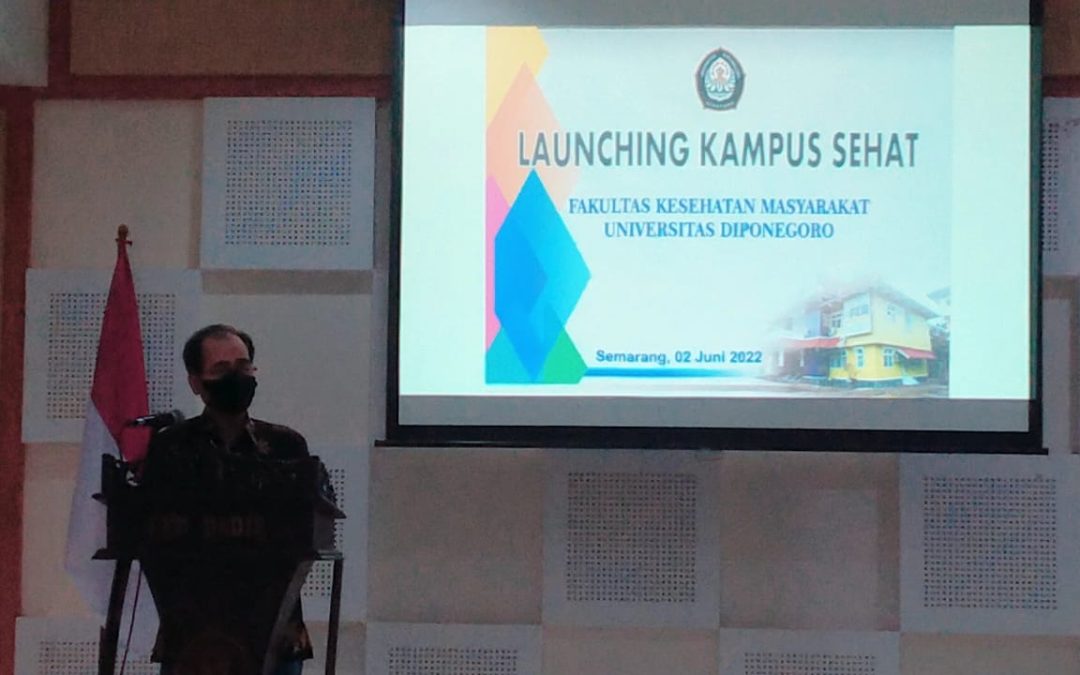 Fakultas Kesehatan Masyarakat Universitas Diponegoro melauncing Kegiatan Kampus Sehat di tinggkat unit fakultas yang diselenggarakan di Aula Gedung Hall D FKM Undippada hari kamis, 2 juni 2022. Kegiatan tersebut di buka oleh Dr. Budiyono, S.KM, M.Kes selaku Dekan Fakultas Kesehatan Masyarakat dan dr. Siti Fatimah, M.Kes selaku Koordinator Kampus Sehat Fakultas Kesehatan Masyarakat serta di hadiri seluruh dosen dan karyawan FKM UNDIP.