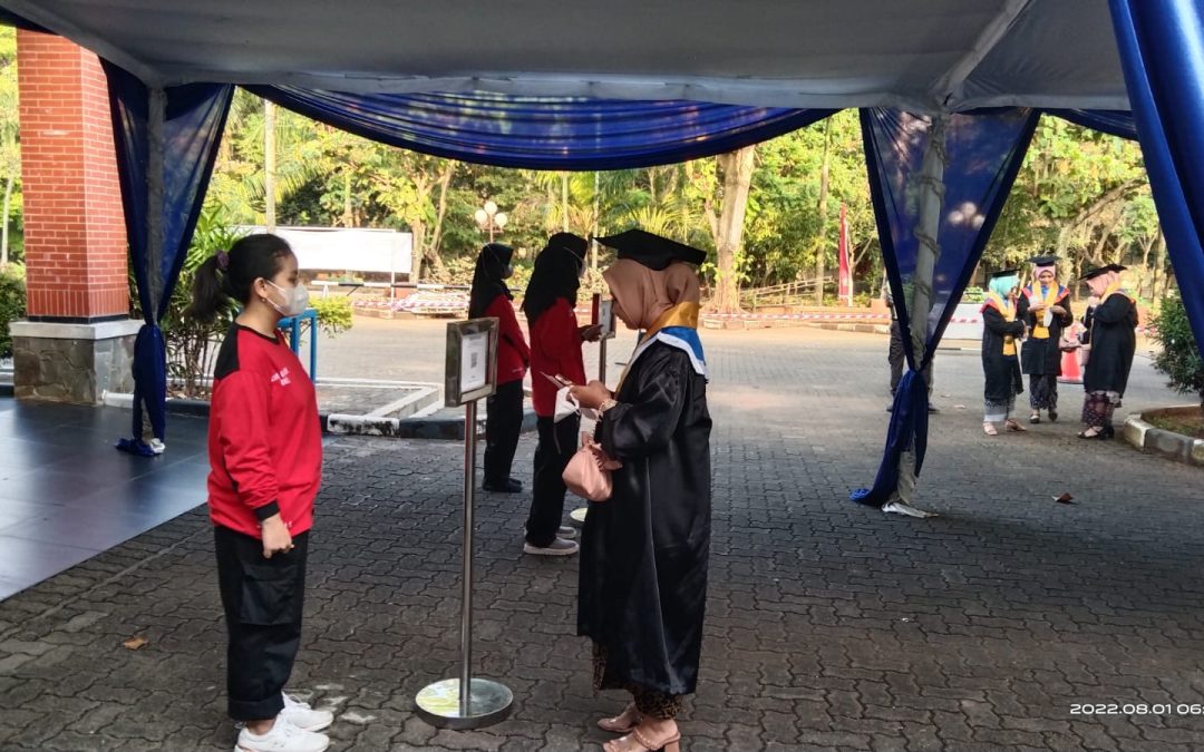 Dalam Kegiatan ini, peserta dapat melakukan scan QR Code Peduli Lindungi dan menunjukan Sertifikat vaksin sebagai bukti telah melakukan Peraturan Pemerintah. Kegiatan ini membantu meningkatkan partisipasi wisudawan guna melaporkan lokasi dan riwayat perjalanan selama transisi Pandemi dan membantu penguatan Test, Treacing dan Treatment (3T) pada sistem aplikasi Peduli Lindungi yang di kelola oleh DTO Kementerian Kesehatan RI.